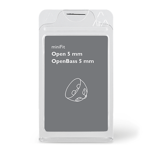 - Offene Domes erzeugen einen zusätzlichen Belüftungseffekt. Sie sitzen am äußeren Rand des Gehörgangs und die Belüftungslöcher lassen den Gehörgang „atmen.“ Die offenen Domes sind in den Durchmessern 5, 6, 8 und 10 mm erhältlich.