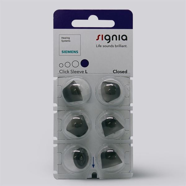 Signia Click Sleeves sind Kuppeln für Hörgeräte, die für bei mehreren Signia Hörgeräten benutzt werden können, wie Signia Slik und allgemeine Empfänger im Ohr Hörgeräte. Bei Signias kleinen Slik Hörgeräten, welche beinahe unsichtbar im Ohr sind, setzen Sie die Kuppeln ans Hörgerät und sichern eine perfekte Passform im Gehörgang. Ebenfalls empfinden Sie einen anti-slip Effekt, sodass Ihr Hörgerät im Ohr bleibt. Sie können zwischen mehreren Modellen von Signia Click Sleeve wählen, es gibt eine offene Version und eine geschlossene Version.