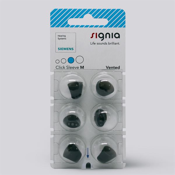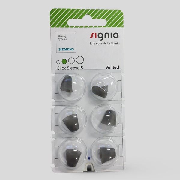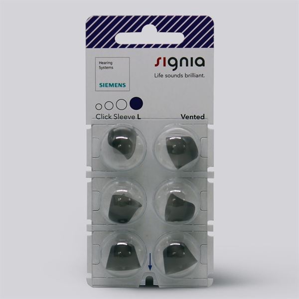 Signia Click Sleeves sind Kuppeln für Hörgeräte, die für bei mehreren Signia Hörgeräten benutzt werden können, wie Signia Slik und allgemeine Empfänger im Ohr Hörgeräte. Bei Signias kleinen Slik Hörgeräten, welche beinahe unsichtbar im Ohr sind, setzen Sie die Kuppeln ans Hörgerät und sichern eine perfekte Passform im Gehörgang. Ebenfalls empfinden Sie einen anti-slip Effekt, sodass Ihr Hörgerät im Ohr bleibt. Sie können zwischen mehreren Modellen von Signia Click Sleeve wählen, es gibt eine offene Version und eine geschlossene Version.